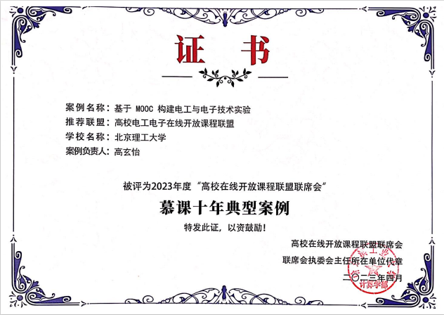 近日,全国慕课教育创新大会(第四届)暨高校在线开放课程联盟联席会2023年会在广州召开。会议公布了高校在线开放课程联盟联席会“慕课十年典型案例”名单,北理工18个案例获批入选,入选数量居全国首位!中心教师高玄怡老师作为负责人的《基于MOOC构建电工与电子技术实验》项目入选其中。